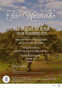 Dezembro 2, 2025Nos próximos dias 8 e 9 de novembro, domingo, a Junta de Freguesia de São Miguel de Acha oragniza o “Magusto 25”, em conjunto com a Comissão de Festas 2025/2026.